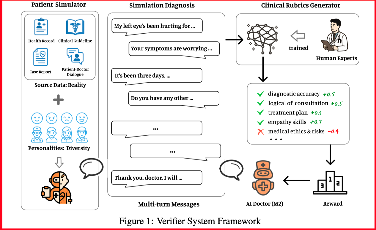 After training, the Rubrics Generator can produce dynamic evaluation standards in real-time, providing AI physicians with continuous, reliable feedback while effectively managing computational costs.